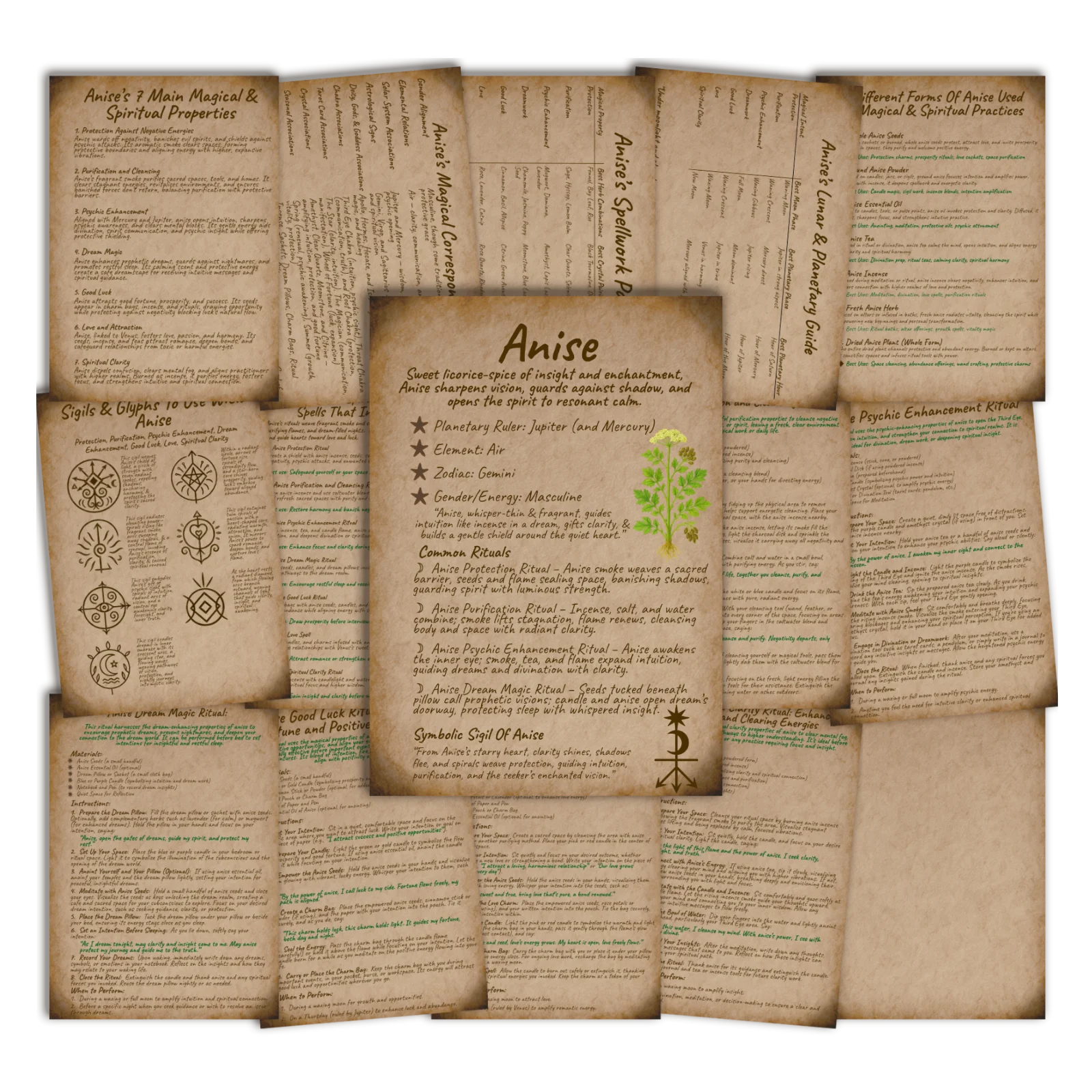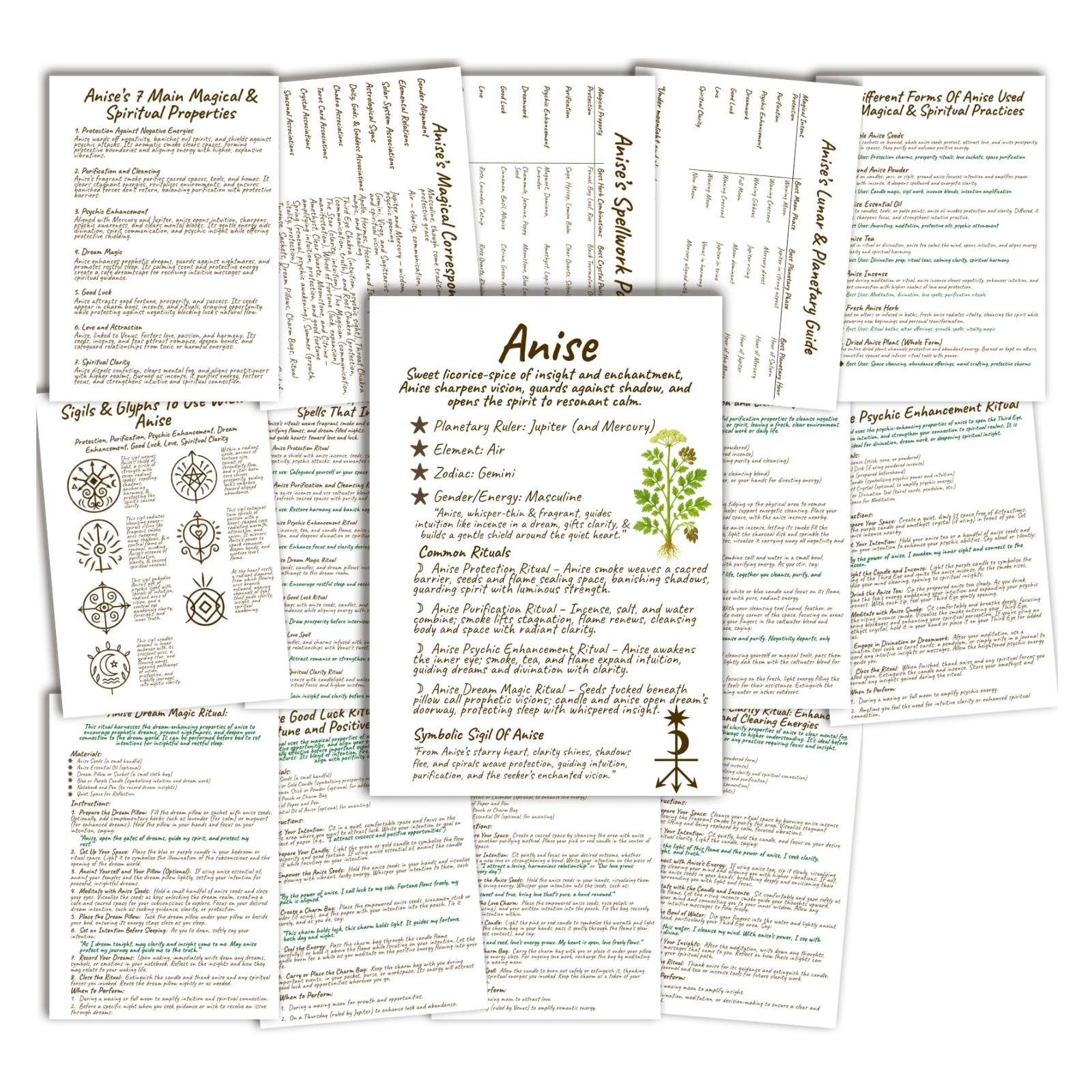 You’ll also receive a complete spellwork pairing guide, a lunar and planetary timing companion, and a beautifully illustrated section detailing the seven magical forms of Anise, from whole seeds and incense to oils, teas, powders, and the dried plant—showing exactly how each form is best used in ritual and spiritual practice.