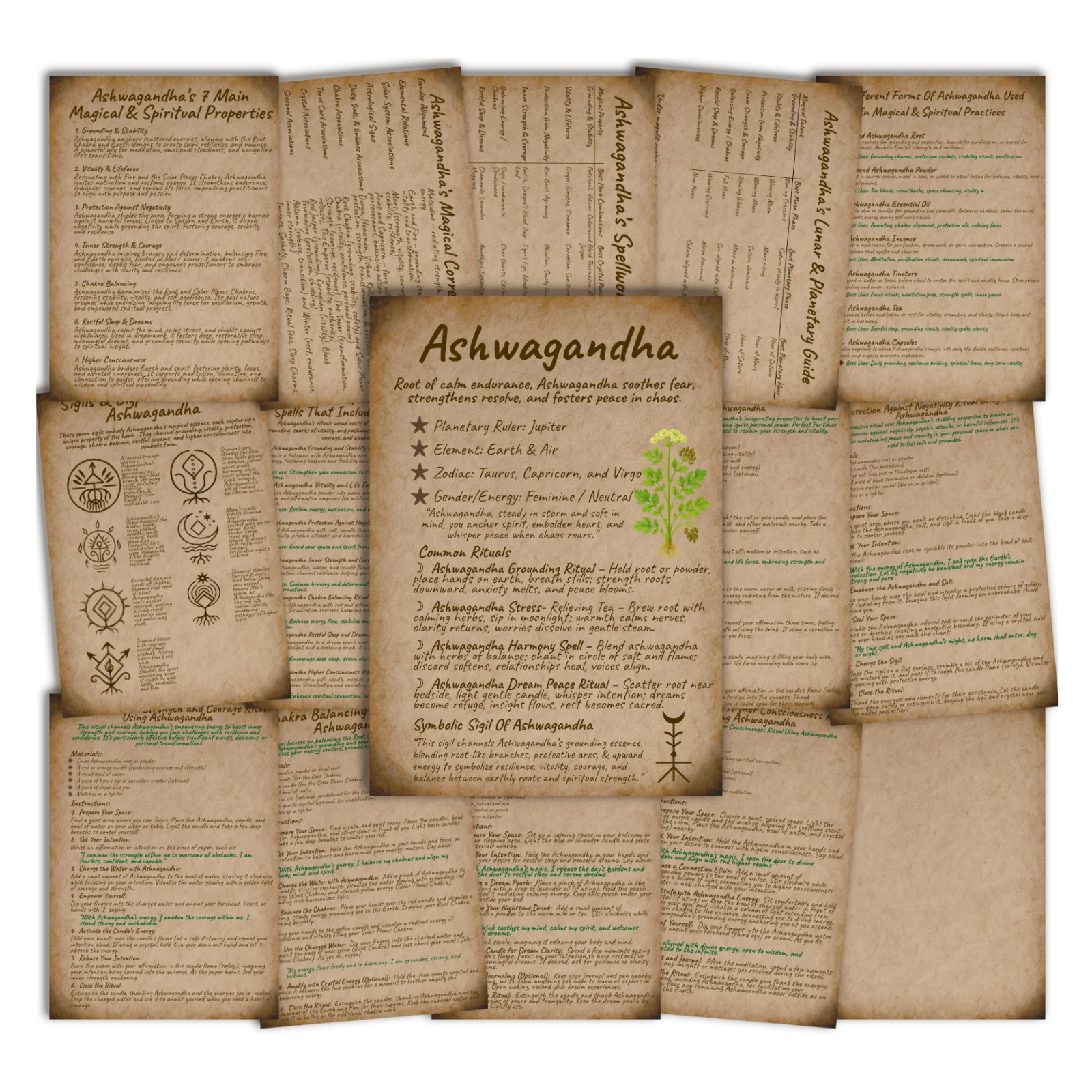 Step into the steady, grounding magic of Ashwagandha, a revered root long honored for resilience, vitality, protection, and inner strength. Known across spiritual traditions as an anchor in times of stress and transformation, Ashwagandha carries the stabilizing power of Earth, the revitalizing spark of Fire, and the expansive influence of Jupiter and Mars. This beautifully crafted Ashwagandha Grimoire captures that enduring energy across a full collection of premium handwritten Book of Shadows pages, designed to feel authentically old-world and deeply ritual-ready.