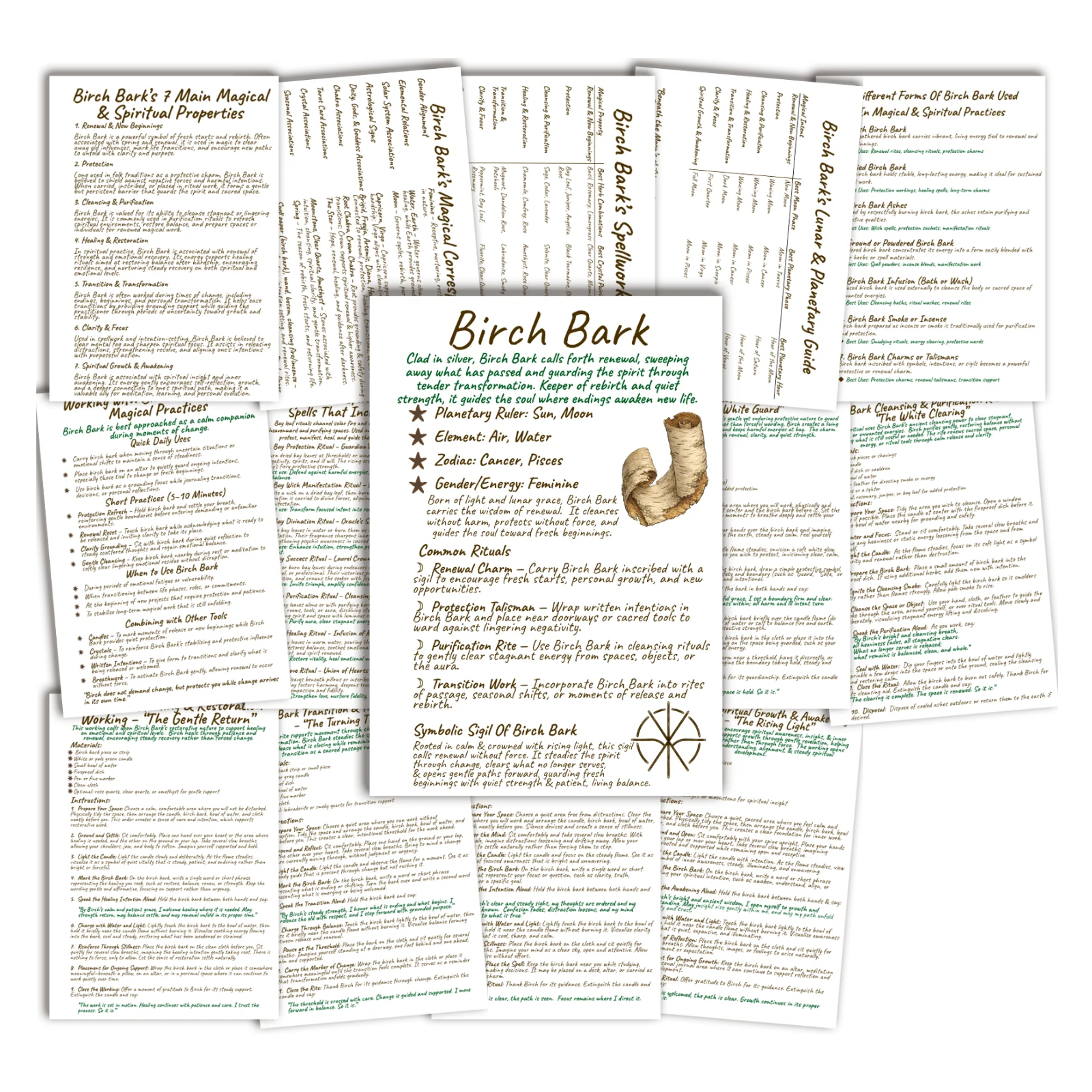 This premium edition also includes a complete spellwork pairing guide, a lunar and planetary timing companion, and a dedicated exploration of the seven magical forms of Birch Bark, from raw bark and shavings to powders, infusions, protective charms, written talismans, and ritual vessels, each thoughtfully explained for sacred and practical use.